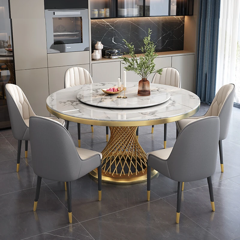 新作のラグジュアリーなステンレス製大理石ダイニングテーブルセット!家庭用に最適な円形テーブル、回転式プレート付きで、食事を楽しむための大きなテーブルです。洗練されたデザインで、あなたの食卓を華やかに演出します!
