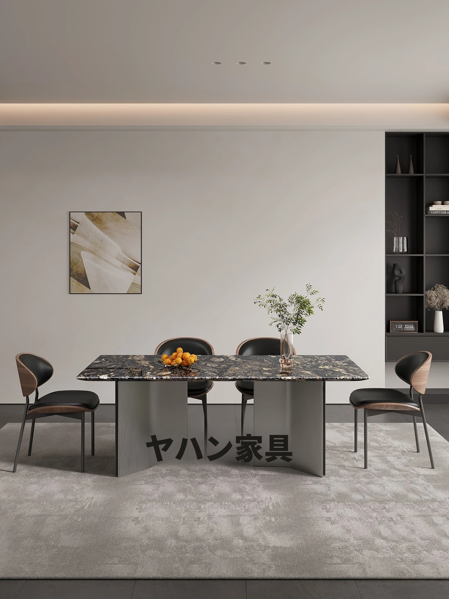 現代的シンプルな大理石ダイニングテーブル|実木製の長方形テーブル|小さな家にぴったりなスタイリッシュな食卓|快適な食事空間を演出するダイニングセット!