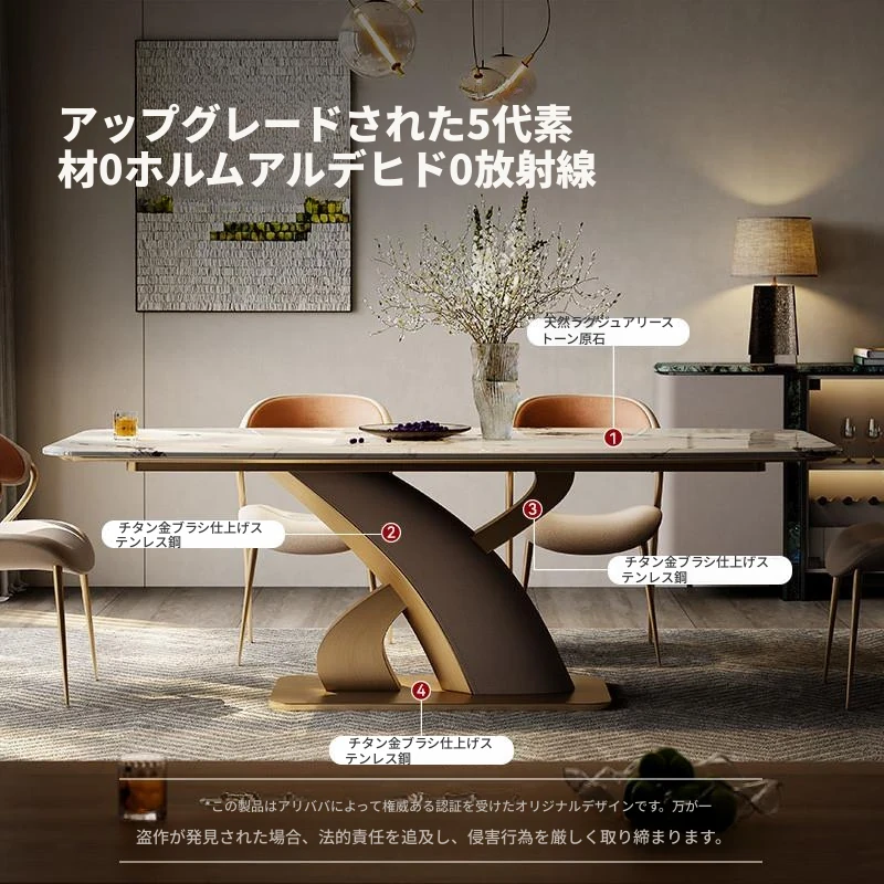 アンティーク風の高級石製ダイニングテーブル インポート・パンドラの天然大理石使用 イタリアンミニマルスタイルのテーブル&チェアセットで、洗練された食卓を演出!