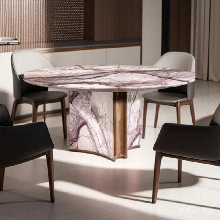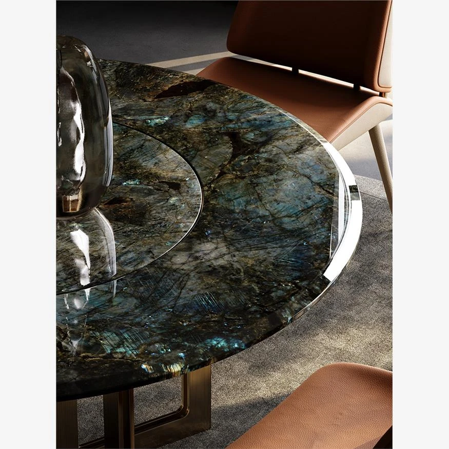 イタリアンラグジュアリー石製ラウンドダイニングテーブル - ヴィラや豪邸にぴったりの全屋コーディネート対応!2024年新作、内嵌式デザインで洗練された食卓を演出します。