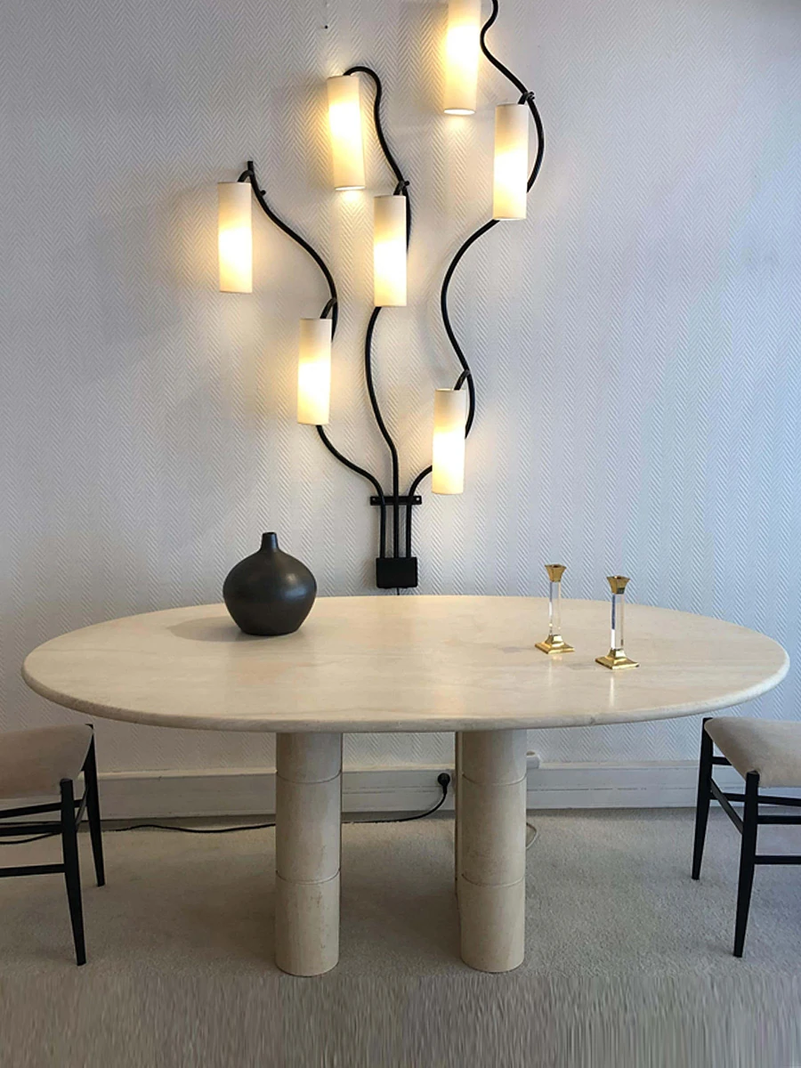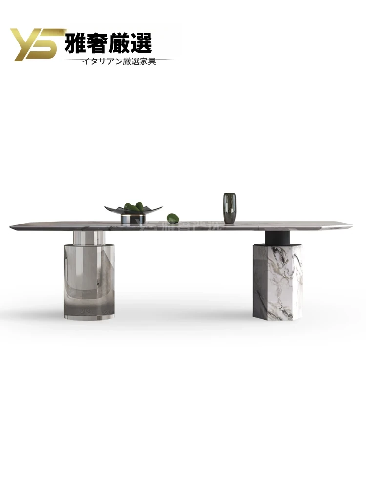 侘寂風の天然大理石ダイニングテーブル - 高級感あふれるクリエイティブな洞石デザイン、別荘や家のスタイルにぴったりの個性的なロングテーブル!